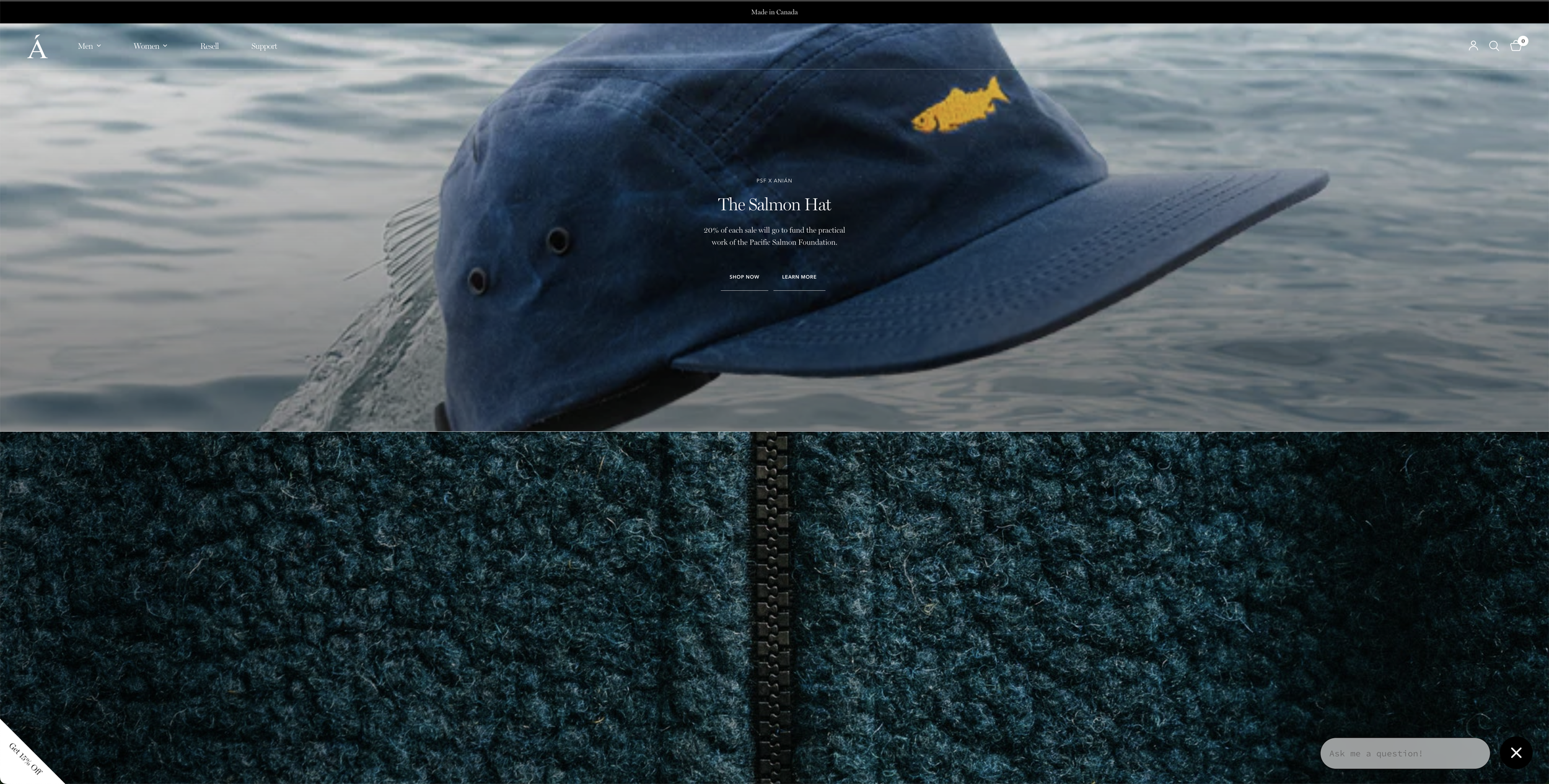 Image: Anian’s homepage for The Salmon Hat launch. The hat sold out within 24 hours!